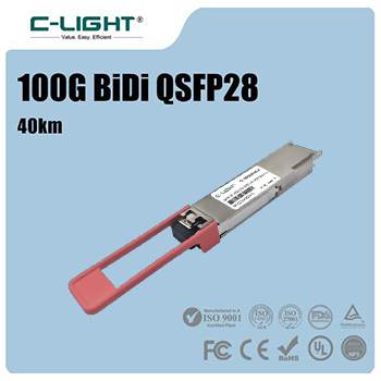 100G QSFP28 Single Lambda BiDi optical transceiver enables 100Gbps data transmission over 40km distances using a single fiber strand. Operating at Tx1304nm/Rx1309nm wavelengths