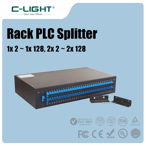 C-LIGHT Rack PLC Splitter is a rack-mounted planar lightwave circuit (PLC) splitter designed for high-density optical signal distribution in fiber networks.
