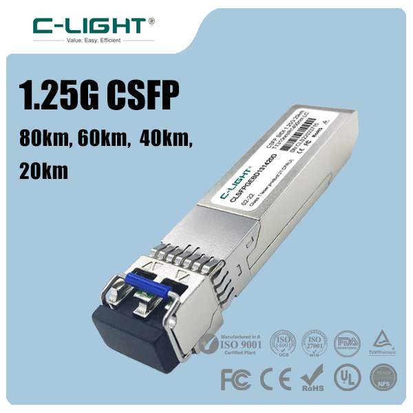 El módulo óptico CSFP 1.25G desarrollado independientemente por C-LIGHT soporta una variedad de distancias de transmisión, incluyendo 2km, 15km, 40km, 80km y 120km, y puede proporcionar una velocidad de transmisión de hasta 1.25Gb/s.