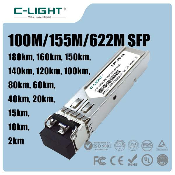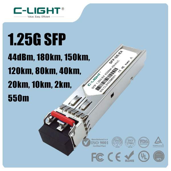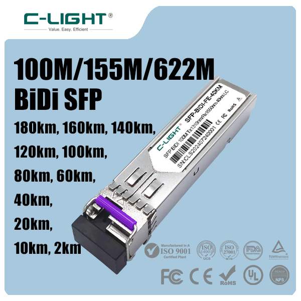 El módulo óptico SFP BIDI 1.25G desarrollado independientemente por C-LIGHT soporta una variedad de distancias de transmisión, incluyendo 550m, 3km, 3km, 20km, 40km, 60km, 80km, 100km, 120km, 140km y 160km.