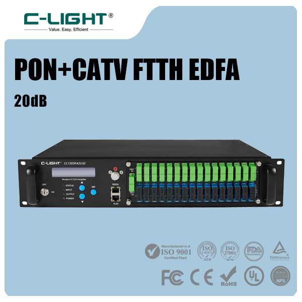 PON CATV FTTH EDFA collectively form the core architecture of modern fiber-to-the-home systems. PON utilizes passive splitters to enable multiple users to share fiber bandwidth, efficiently delivering data, voice, and video (e.g., CATV signals).