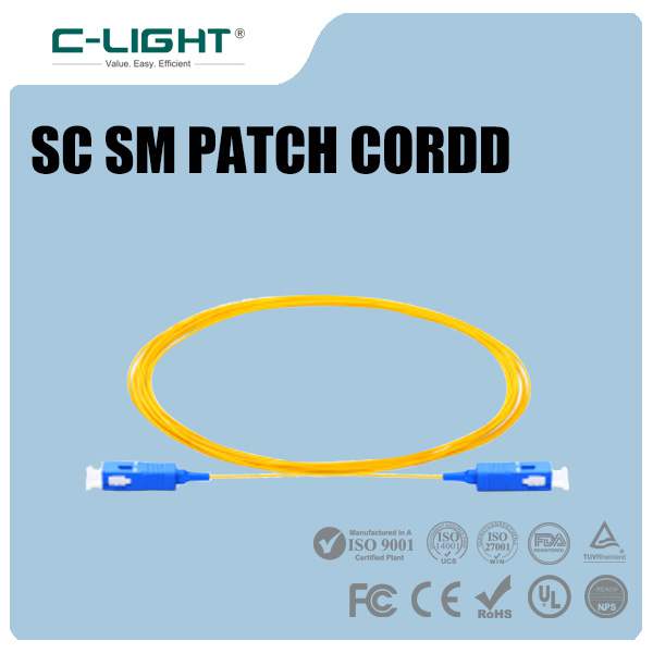 C-LIGHT LC SM Patch Cord is a single-mode fiber optic patch cable utilizing a compact LC connector, supporting 1310 nm and 1550 nm wavelength transmission with low insertion loss (≤0.3 dB) and high return loss (UPC ≥50 dB, APC ≥60 dB).